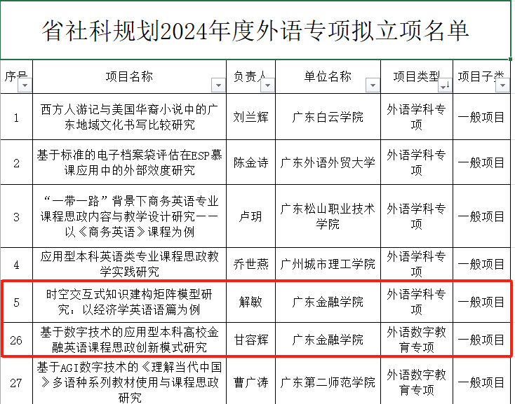 近日,公司解敏博士和甘容辉副教授获得2024年度省社科规划外语专项立项,标志着公司在外语学科研究领域取得显著成就。