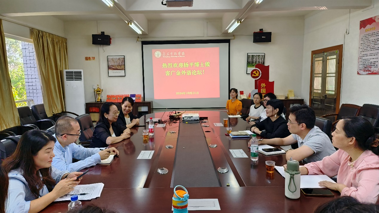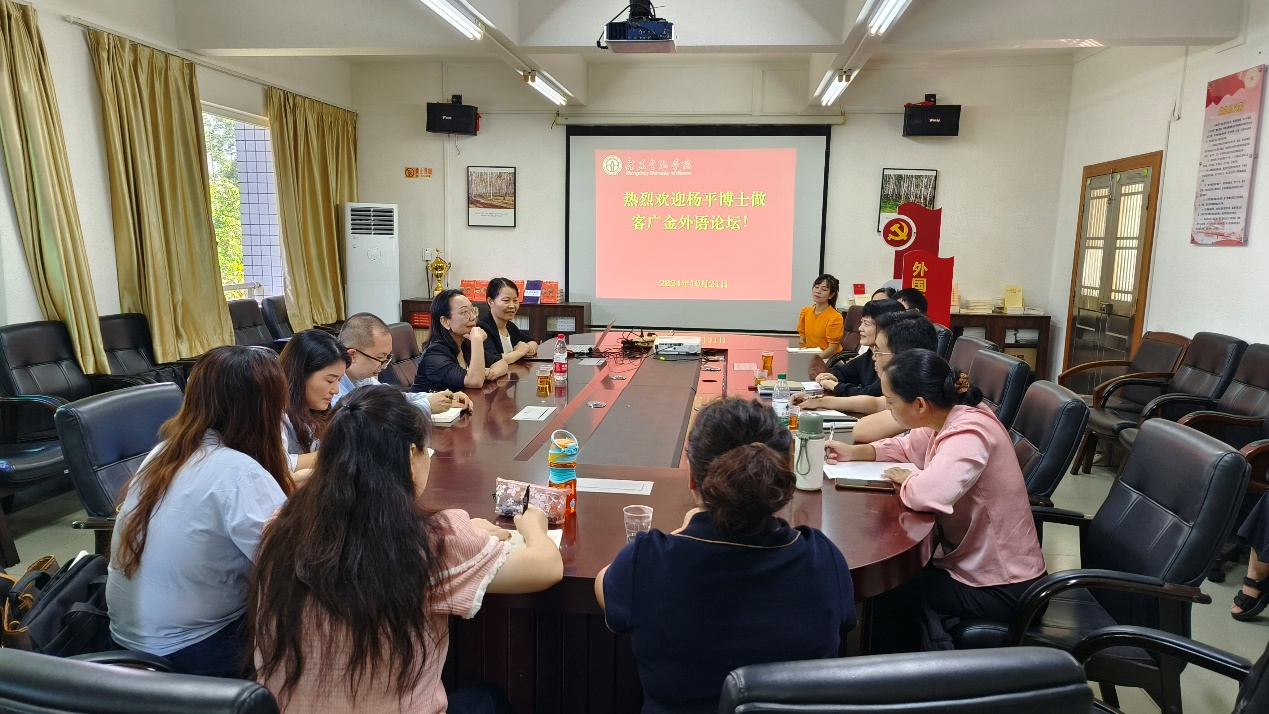 10月21日上午,《中国翻译》杂志主编、中国翻译研究院副经理杨平博士莅临公司,在bevictor伟德的会议室2417与公司领导及部分教师进行了主题为“漫谈研究论文选题及其它”的精彩座谈。