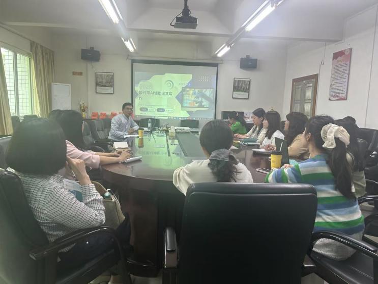 论坛伊始,陈树坤副经理作了题为“AI辅助学术写作”的专题报告。介绍了“米塔搜索”、“IMA”和“KIMI”等智能工具在文献检索、研究综述和论文写作中的应用,并通过实例演示了如何利用这些工具提升学术写作效率。报告引发了与会教师的浓厚兴趣,大家就AI工具的学术伦理边界等问题展开了讨论。