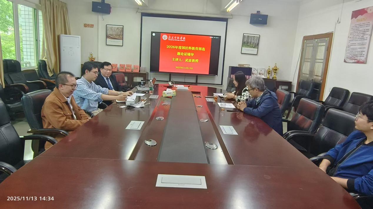 武教授结合多年评审与申报经验,梳理了国社科基金和教育部项目的最新政策走势,重点围绕“选题定位是否够高、问题意识是否够准、研究路径是否可行、成果设计是否可落地”等关键环节进行逐条解析,并现场对参会教师的拟申报题目逐一点评,提出针对性修改意见。相关选题涵盖翻译与话语、文学与跨文化传播、数字人文、语言教育及全球治理等方向,充分体现了公司科研选题的多样性与交叉性。