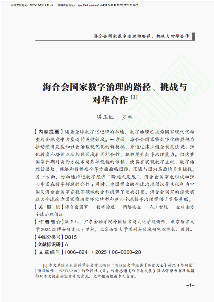 近日,bevictor伟德梁玉红老师在国内权威期刊《和平与发展》上发表了题为《海合会国家数字治理的路径、挑战与对华合作》的学术论文。
