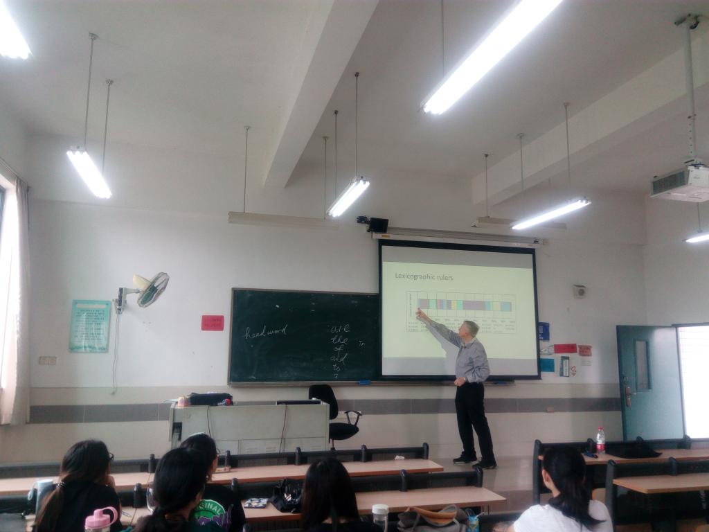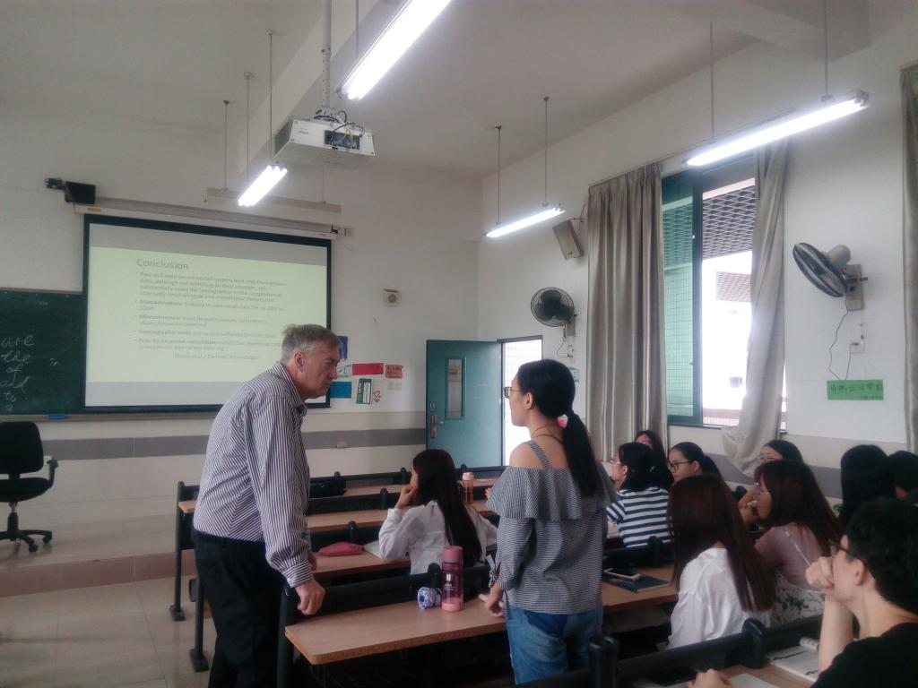 2018年6月12-14日,在与​bevictor伟德教师进行“海外名师讲座”学术交流之余,公司还安排词典学名家、南非比勒陀利亚大学(University of Pretoria)语言学Prinsloo教授分别到公司1515951、1515952和1515953三个班的“英语论文写作”课上,让公司英语专业老员工在教室里,面对面与海外名师交流;让老师给员工答疑解惑。