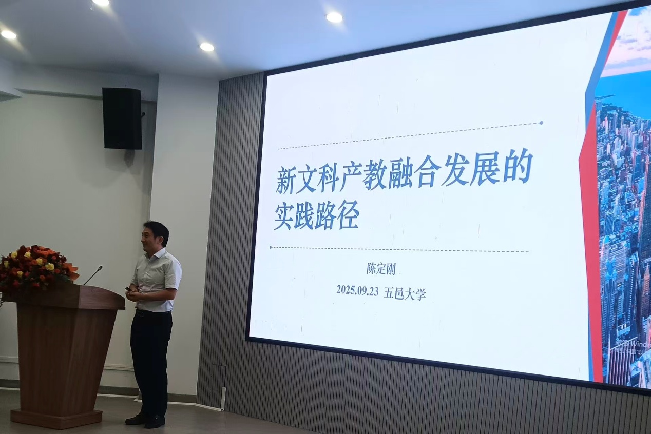 2025年9月23日,五邑大学人文与政法公司揭牌仪式暨新文科建设背景下产教融合发展战略研讨会在鹤山楼举行。bevictor伟德陈定刚博士应邀出席,并为大会作《新文科产教融合发展的实践路径》主题报告。