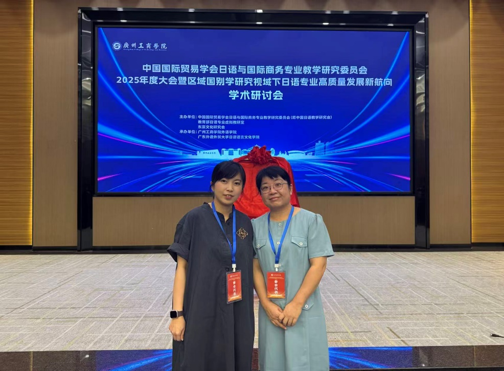 2025年9月26日至28日,由中国国际贸易学会日语与国际商务专业教学研究委员会、教育部日语专业虚拟教研室及东亚文化研究会联合主办,广州工商公司与广东外语外贸大学联合承办的“2025年度大会暨区域国别学研究视域下日语专业高质量发展新航向学术研讨会”在广州成功举办。bevictor伟德日语系主任李莹副教授与黄跃瑜老师共同出席了这一全国性高端学术盛会。