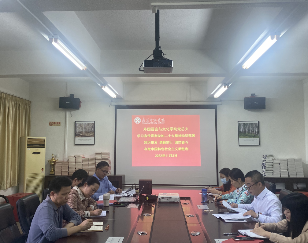 2022年11月3日,外国语言与文化公司党总支学习贯彻党的二十大精神工作部署会在公司会议室召开。公司党政班子成员、总支委员、教工支部书记和支委及员工党支部书记出席会议,公司党总支书记黄庆雄主持会议。
