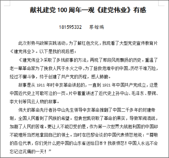 青年们对于红色文化的学习与传承不仅体现在字里行间的描绘,也展现在视频的娓娓记录和青年们的声音中。19级的同学们通过自己录制介绍视频、朗诵红色文化、进行红色文化的自我展示等形式,真切而实际地感受红色文化的熏陶,传承着红色文化的精神。