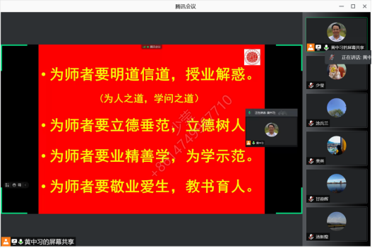 接着,经理黄中习就狠抓师德师风建设做了补充发言,他指出师德师风建设是贯彻落实习近平总书记“教师队伍素质直接决定着办学能力和水平”“评价教师队伍素质的第一标准应该是师德师风”的要求,师德能带动员工的思想道德建设,师风能带动公司教风、学风、校风和行风,抓师德师风建设就抓住了公司产品的根本。会议要求全体教工要提高政治站位,切实认清开展师德师风建设的重要性,切实开展好师德师风建设的各项工作,全面提升师德师风整体水平,不断开创公司教育事业改革发展新局面,为办好人民满意的高等教育作出更大贡献。