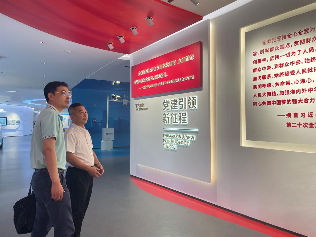在知识城(广州)科技服务有限公司党支部书记佘志广和纪检负责人古妮的带领下,大家参观了中新广州知识城发展规划馆和国际人才自由港展厅并重温入党誓词,坚定牢记自己的庄严承诺,激励鞭策自己在工作中时刻以党员的标准严格要求自己,坚定理想信念,履职尽责,同时详细了解中新广州知识城在党的建设、发展规划、招商引资、技术创新、知识产权保护、历史文化保护、领军人才引进等相关情况。