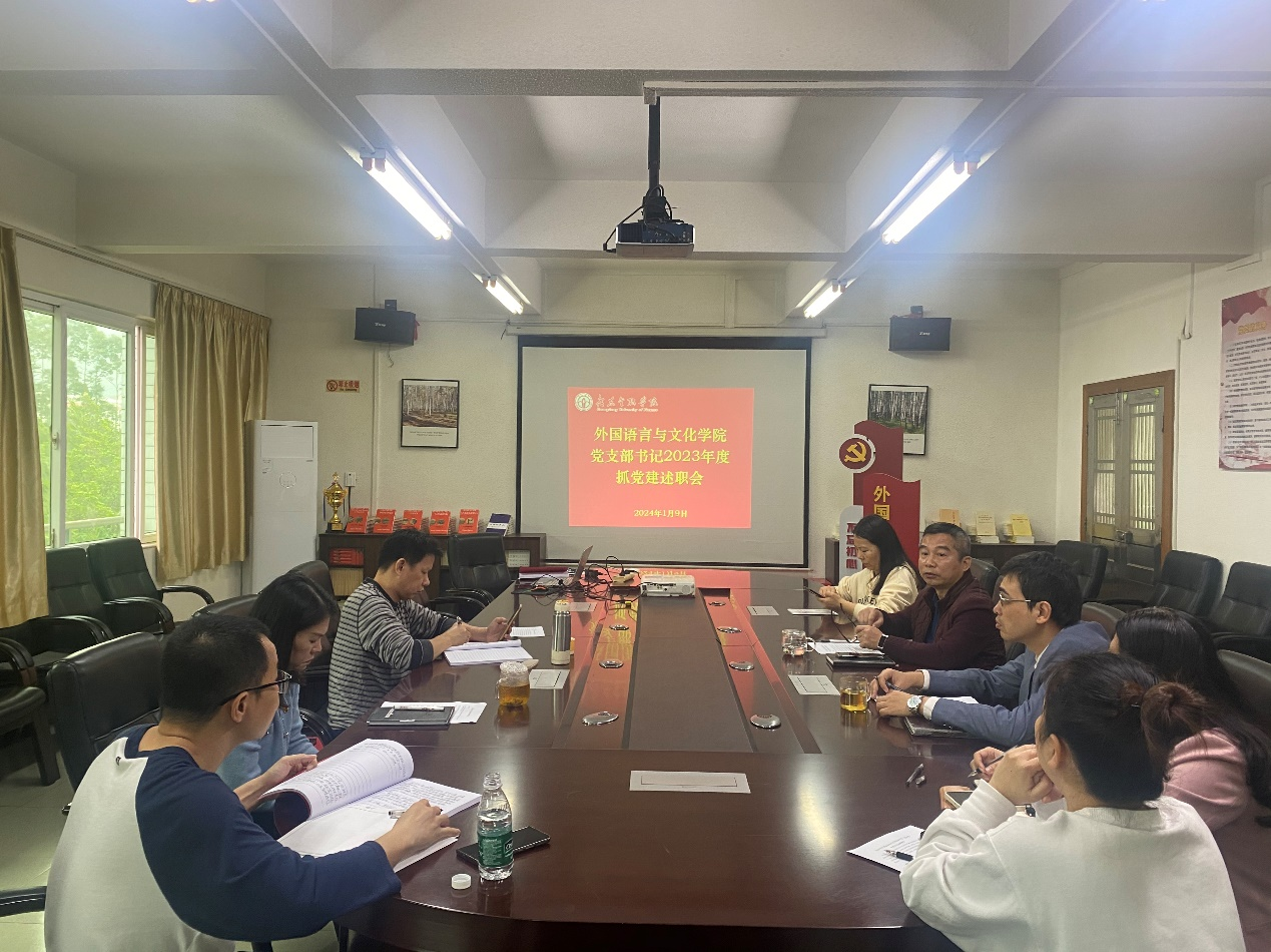 1月9日,bevictor伟德于公司2417会议室召开公司党支部书记2023年度抓党建述职会。会议由外国语言与文化公司党委书记黄庆雄主持,公司党委委员、教工第一、第二党支部书记及支委,员工第一、第二党支部书记及支委出席,公司副经理洪溪珧、甘容辉应邀列席。