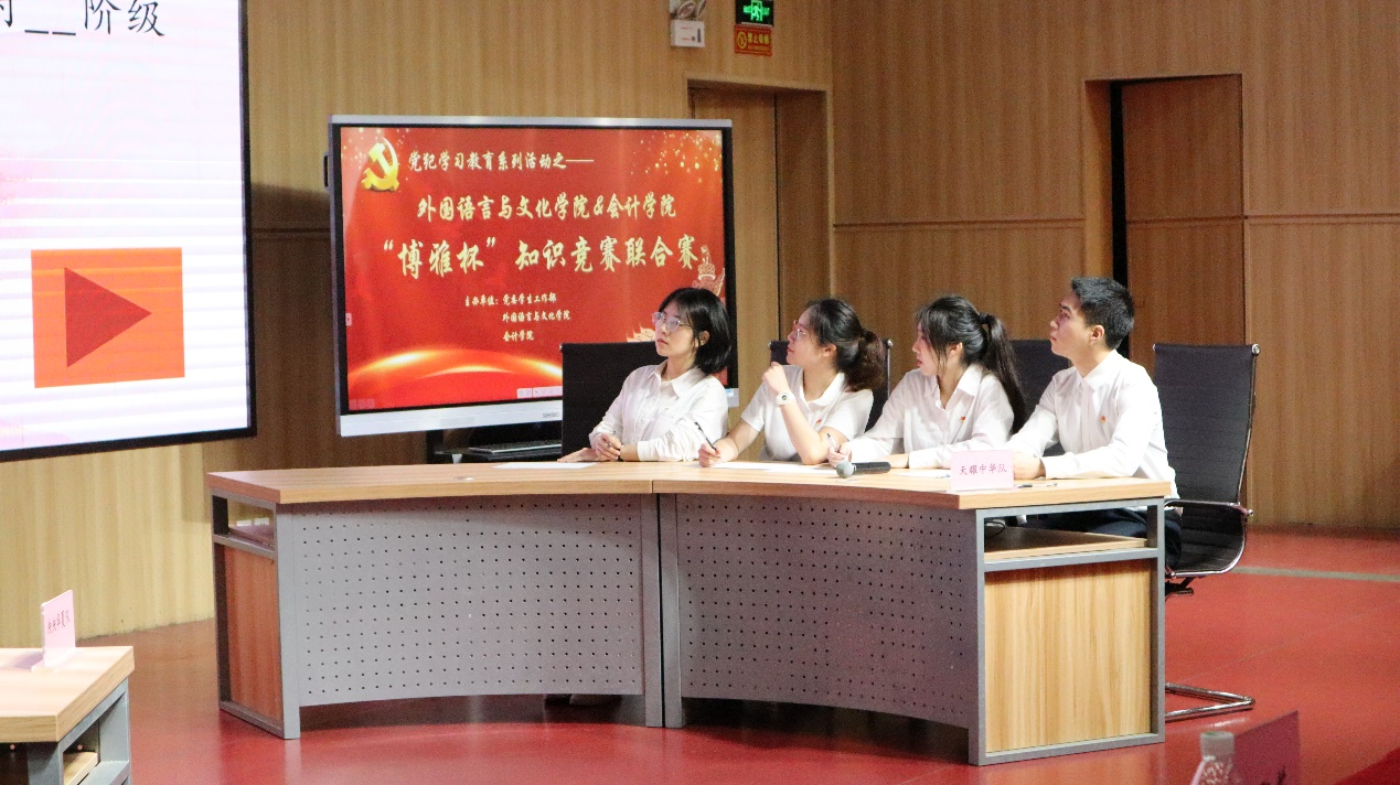 本次“博雅杯”知识竞赛以“初心不改铸党魂,使命在肩谱新篇”为主题,将党纪知识、党史知识、文学历史、自然科学等百科知识融入比赛。比赛伊始,会计公司党委书记赖志成代表双方公司致开幕词。他表示自4月公司党委开展党纪学习教育以来,外国语言与文化公司党委和会计公司党委按照公司党委工作要求部署,将党纪学习教育融入日常、抓在经常并通过知识竞赛的形式将学习成果转化,员工党员间形成了人人学习、人人参与的良好局面。