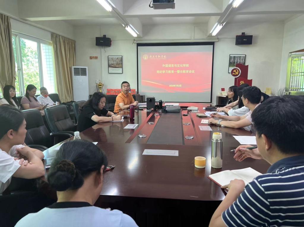 7月3日下午,按照公司党委党纪学习教育总体安排,外国语言与文化公司党委党纪学习教育警示教育会在公司2417会议室召开。外国语言与文化公司党委书记黄庆雄主持会议并讲话。公司党政班子、公司党委理论学习中心组成员、全体党员参加会议。