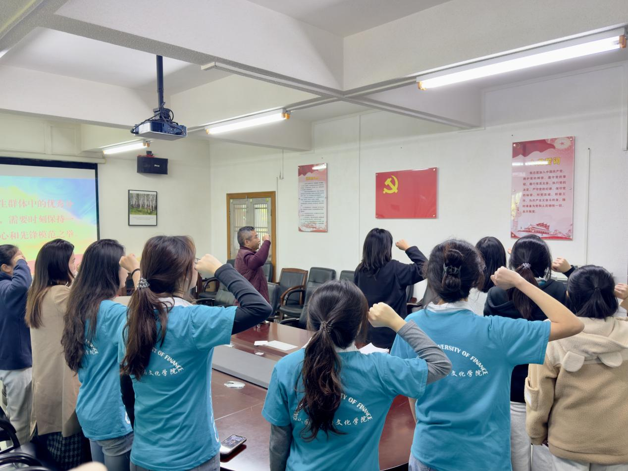 微党课后,由党委黄庆雄书记领誓,全体党员面向党旗,高举右拳,重温入党誓词。铿锵有力的誓言在场内回荡,彰显了党员们对党的忠诚和对共产主义事业的坚定信念。通过重温入党誓词,党员们进一步坚定了理想信念,增强了责任感和使命感。