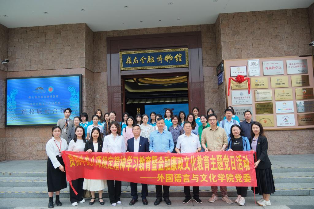 为深入贯彻《中共中央办公厅关于在全党开展深入贯彻中央八项规定精神学习教育的通知》和公司党委部署要求,巩固深化党纪学习教育成果,4月11日,外国语言与文化公司党委书记黄庆雄率队赴佛山市岭南金融博物馆开展贯彻中央八项规定精神学习教育暨金融廉政文化教育主题党日活动。副经理陈树坤、洪溪珧、副书记王丹、公司党委理论学习中心组成员、教工党支部委员及师生党员共三十余人随行参加了活动。