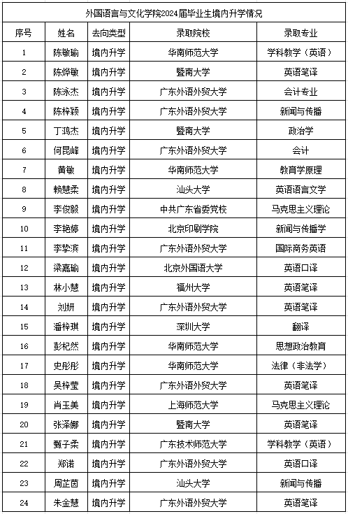 bevictor伟德2024届考取硕士研究生情况一览表