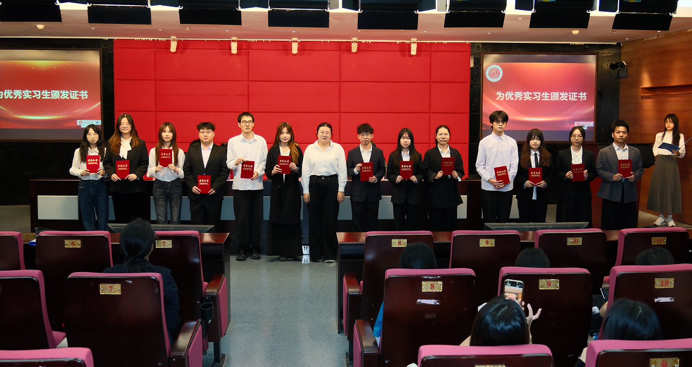 会上,优秀实习生代表欧绮婷、黄耀桦,优秀组长代表温卓轩、陈莹莹分别上台作实习感言分享。优秀实习生代表李彩莹倡议同学们要以自身的语言能力作为基础,用耐心与真诚做好服务,带着从广交会收获的热忱,在更多国际交流的场景中勇敢发声、积极作为。