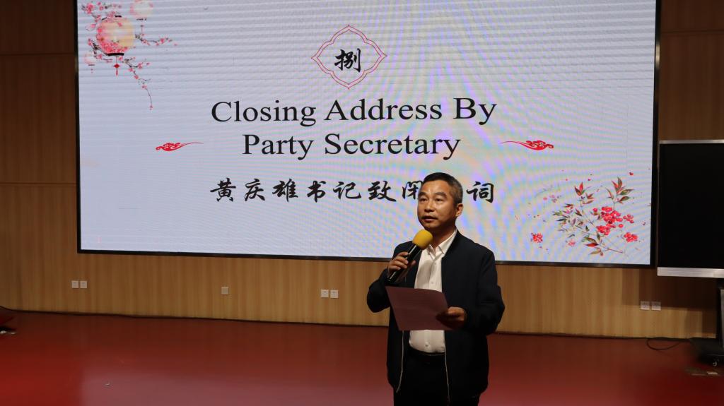 唐姗老师和袁琳女士作为评委代表对选手们的表现进行了点评,对他们比赛过程中不足的地方也提出了针对性的建议。最后,黄庆雄书记为本次大赛致闭幕词,他向所有的参赛者表示了最热烈的祝贺,盛赞本次大赛是一场高水平、高质量的比赛。同时,他也表示,希望这场比赛能激发同学们对商务英语的学习热情和对知识的渴望追求,更期待同学们能够把在比赛中获得的技能和经验,带入到学习和工作中,让商务英语成为大家事业成功的助推器。