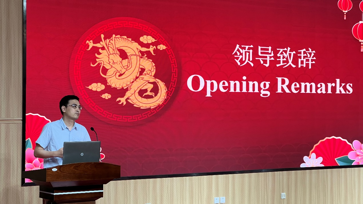 首先,陈树坤副经理致开幕辞,他以中国龙的概念内涵及其翻译为引子,深刻剖析了中国在当今国际社会中的机遇和挑战,并强调了当代老员工所肩负的责任。