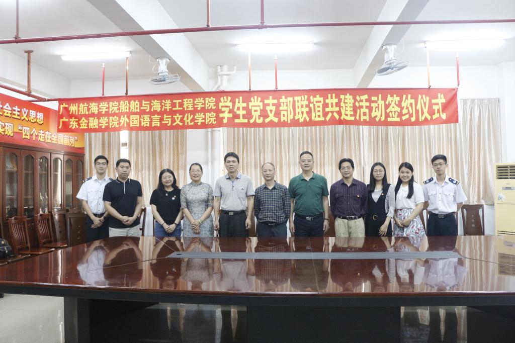 广航党委委员、组织部部长陈燕龙、船舶与海洋工程公司党总支书记杨应华、广金组织部副部长何承栋、外国语言与文化公司党总支书记黄晓莉、副书记李昌郴及双方员工党支部书记出席了本次仪式。