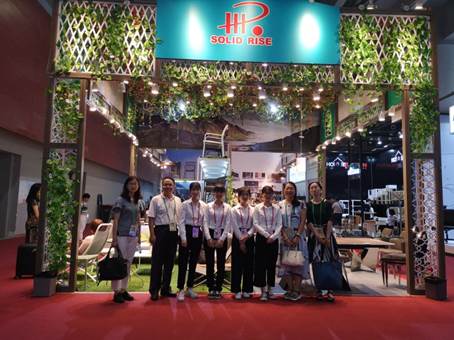 随后,黄晓莉一行来到2008届员工陈奕光的家具展台参观。陈奕光员工对母校领导的到来表示热烈欢迎。老师们饶有兴致地参观了员工企业的丰富产品和创意展示,亲切询问了陈奕光员工的企业发展情况,希望他抽空常回母校,给师弟师妹奉献分享创业就业的经验。