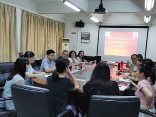 景海明专题汇报了广东轻工职业技术公司应用外语公司专科商务英语专业的特色办学和教研成果,并就本科商务英语专业联合培养创新模式(广金与广轻工协同培养)提出设想和建议。黄中习经理介绍公司本科商务英语专业的办学特点。黄晓莉介绍了公司党建工作的特色经验。