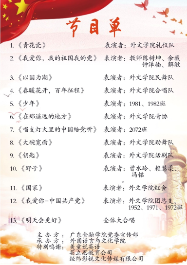 “风华正茂,青春颂党”,本次庆党百年文艺晚会不仅展现bevictor伟德学子们的多才多艺,也体现每一位学子对建党百年的浓浓情意及与党同行的坚定信念。每一位老师、每一位学子都将进一步从百年党史学习中汲取智慧力量,深刻感悟思想伟力,传承红色基因,坚定党的信念,共创美好未来,共圆中国梦。
