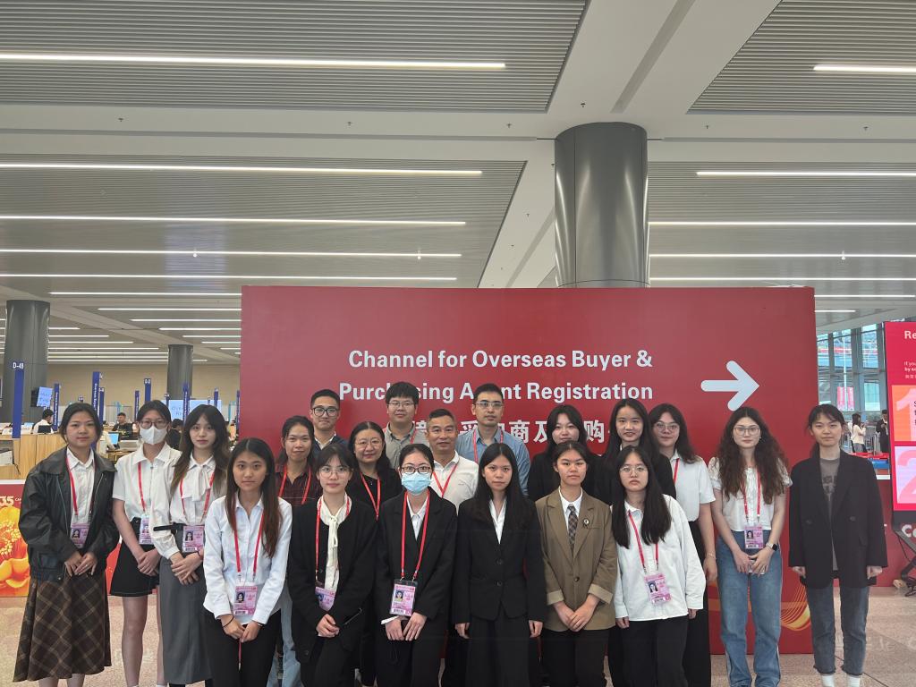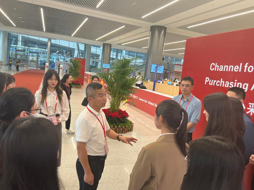 4月25日下午,外国语言与文化公司党委书记黄庆雄率队前往广州135届广交会展馆现场开展访企拓岗及员工实践实习调研,公司副经理陈树坤、党委副书记王丹、辅导员邓伟琦、孙嘉程老师随行。