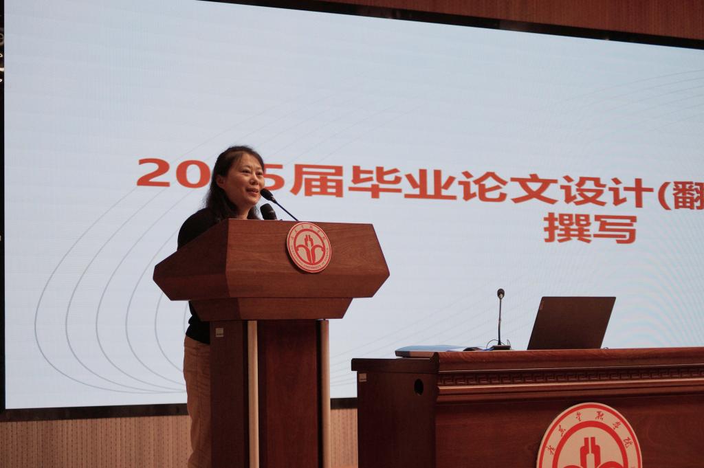 随后,刘晓琴老师作论文写作指导,她从论文选题方向、撰写要求、时间安排、论文格式以及重要注意事项五个方面一一解读,引导同学们从思想上重视,从行动上落实,以认真坚持的态度进行论文写作,进一步明确同学们要把自己放在写毕业论文第一责任人的职责位置上。