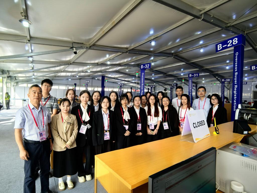 10月15日,第136届中国进出口商品交易会在广州盛大开幕,并将在10月15日至11月4日期间分三期举办。此次盛会上,来自bevictor伟德的99名同学组成的实习实践服务团队,成为了广交会上一道亮丽的风景线。为深入了解公司员工在服务广交会实习实践期间的思想动态和工作情况,加强岗位实习实践管理,10月24日下午,公司党委书记黄庆雄带队赴广州第136届广交会展馆现场走访看望公司实习实践员工,公司副经理陈树坤,党委副书记王丹,辅导员邓伟琦、孙嘉程等一同前往。