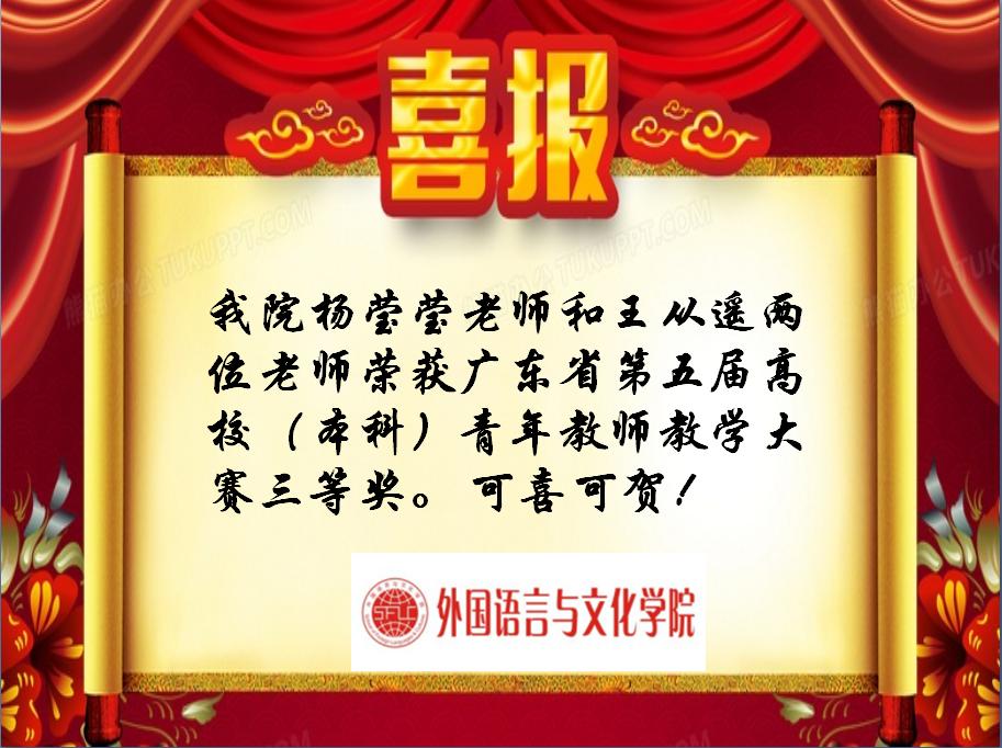 喜报:杨莹莹和王从遥喜获省级青年教师教学大赛三等奖