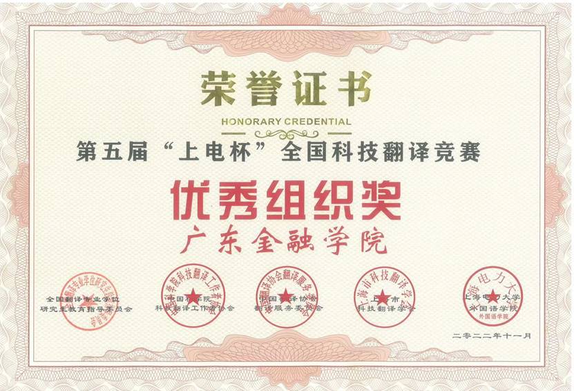 公司荣获第五届“上电杯”全国科技翻译竞赛优秀组织奖