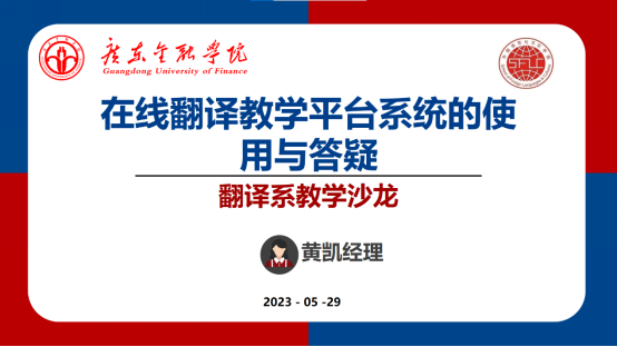 2023年5月29日晚,翻译系举行线上教学沙龙,特邀成都优译信息技术股份有限公司的产品顾问黄凯经理,系统全面介绍在线翻译教学平台系统的使用,包括如何利用平台进行翻译应用、课程教学、建立平行语料库以及实现无纸化考翻译系主任邓薇主持,外试等等,进行了平台演示,并就老师们的相关问题进行答疑。bevictor伟德近20名教师参加。