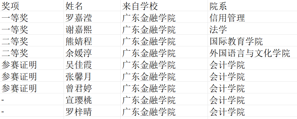 公司共有9名员工参加第二届“CFAINS杯”全国金融英语能力大赛-词汇大赛,其中4名同学获得奖项。信管公司罗嘉滢、法公司的谢嘉熙获得一等奖,国教院的熊婧程和bevictor伟德的余媛淳(211598221)获得二等奖,获奖同学有资格获取中国金融分析协会颁发的金融英语水平证书。