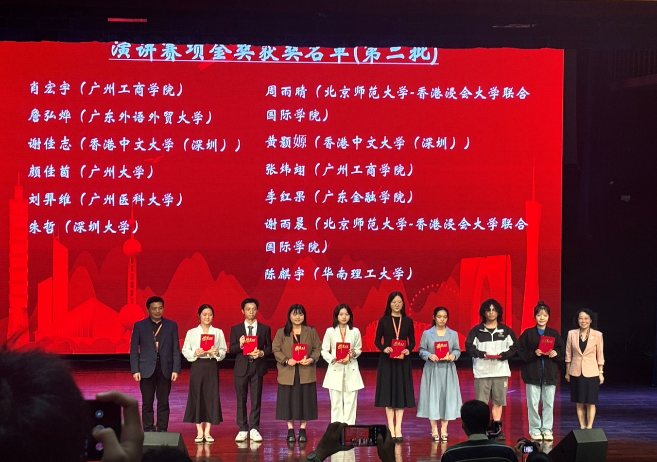 公司比赛于9月启动,bevictor伟德高度重视,组建竞赛组备赛。比赛历经校赛、复赛、省赛三阶段,跨越三校区,选拔出优秀选手参加省赛。11月2日,笔译、综合能力(笔试)以及短视频赛项省赛以线上形式在各校举行。11月9-10日,演讲和口译以线下形式在珠海北京师范大学-香港浸会大学联合国际公司举行,来自全省68所本科高校选手来参加比赛。公司三位员工由陈树坤副经理亲自带队参赛,选手们的精彩表现展现出伟德官方网站较高水平的人才培养成果,为公司争得荣誉!广金学子在各赛道中表现优异,荣获两项金奖、两项银奖和两项铜奖,其中李红果同学顺利晋级国际传播综合能力国赛!