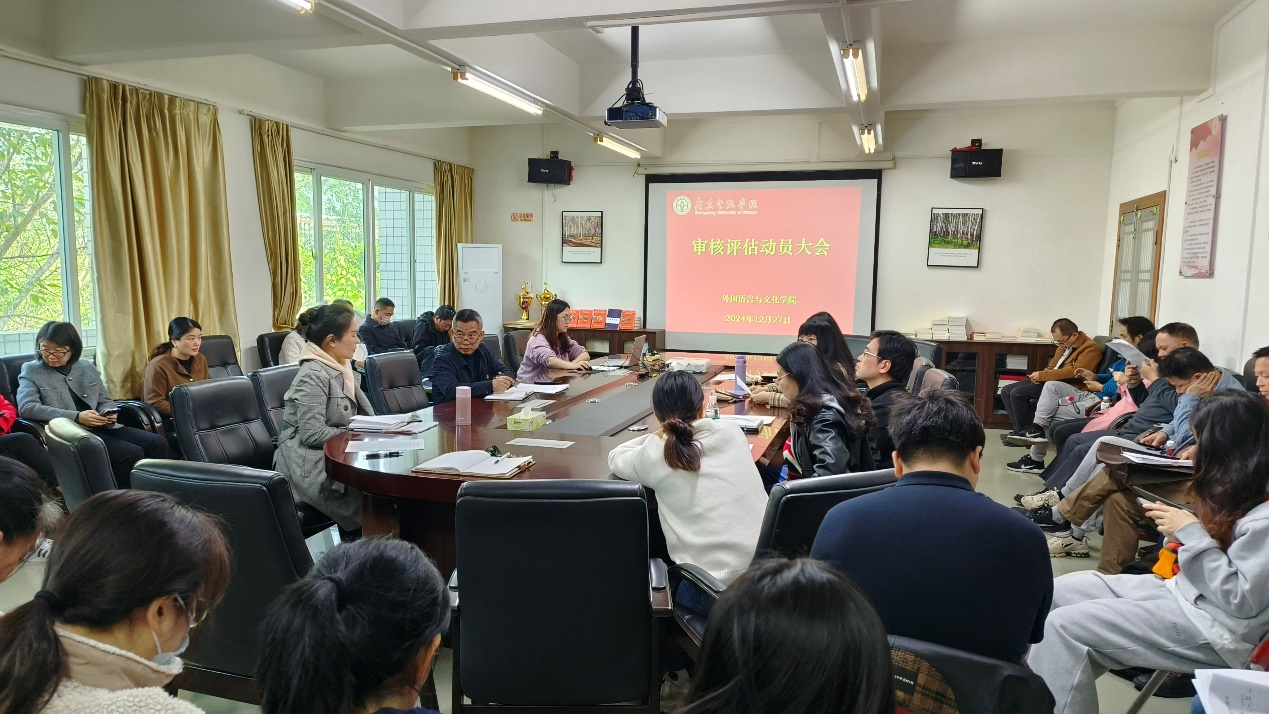 根据广东省教育厅工作部署,公司将于2025年3月24日-4月25日接受新一轮本科公司产品工作审核评估。为进一步加强公司内涵建设,以评促建、以评促改、以评促管、以评促强,确保审核评估各项工作有序推进,以良好的工作状态迎接审核评估,公司于12月10日在本部图书信息中心拔萃报告厅召开本科公司产品审核评估迎评促建推进会。会议由公司党委书记李建军主持。为贯彻落实迎评促建推进会议传达精神,12月27日,bevictor伟德召开审核评估动员大会,旨在对审核评估最后阶段的工作进行全面部署和动员。大会由黄庆雄书记主持,涂兵兰经理发言,全院教职员工参加了此次会议。