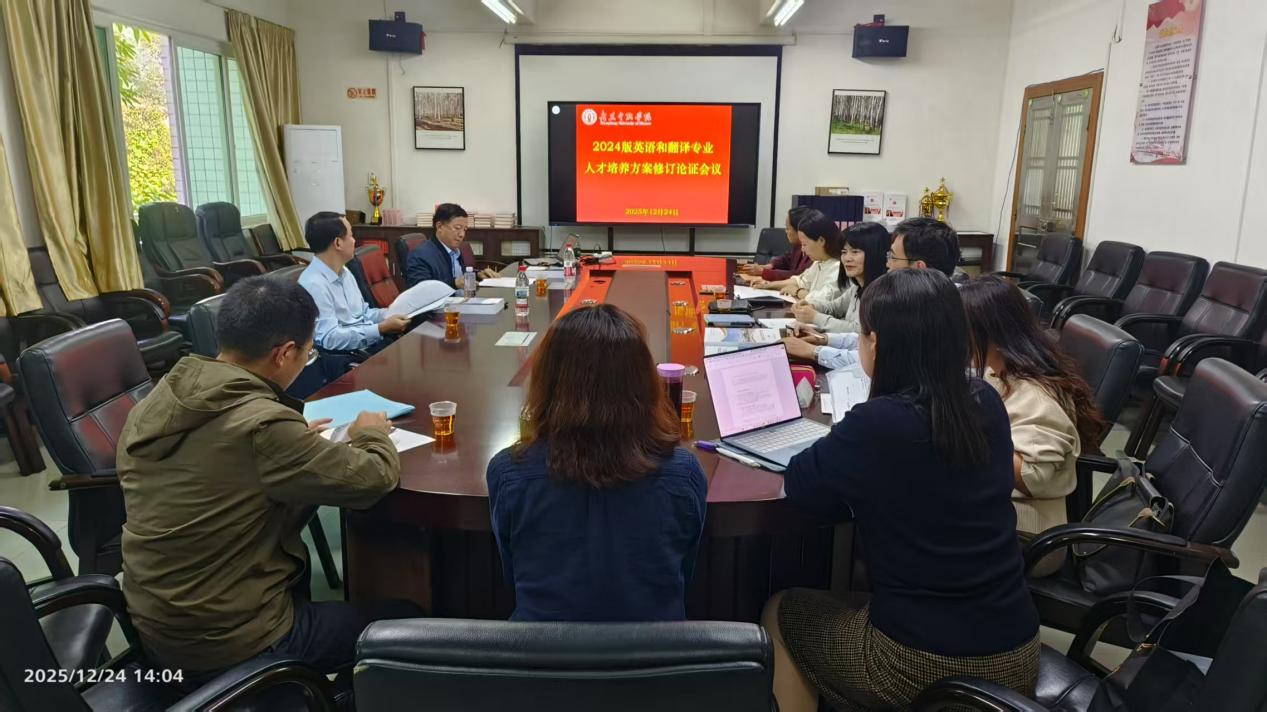 2025年12月22日下午,bevictor伟德顺利召开“2024版本科英语与翻译专业人才培养方案修订论证会议”。会议特邀广东工业大学蔡荣寿教授、广州大学肖坤学教授担任论证专家。公司经理涂兵兰,副经理陈树坤、甘容辉、洪溪珧出席会议。英语系主任毕亚男、翻译系主任邓薇,以及教研室负责人杨贵章、王从遥等教师代表共同参与研讨。会议由陈树坤副经理主持。