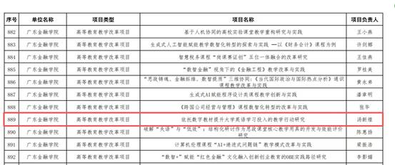 12月26日,广东省教育厅公布2025年度本科高校教学与教学改革质量工程拟立项项目名单,公司汤新煌老师主持的项目《依托数字教材提升大学英语学习投入的教学行动研究》成功立项,标志着其在教学改革研究领域取得新突破。