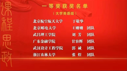 近日,由教育部高等公司大学外语教学指导委员会、高等教育出版社、全国高校教师网络培训中心和《中国外语》编辑部等共同承办的“2022年外语课程思政优秀教学案例全国交流活动”落下帷幕。公司bevictor伟德甘容辉老师团队(翁佳炀、夏娟、李海燕)继获得广东省赛特等奖后再获佳绩,荣获大学英语组全国一等奖。