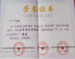 最终,黎雨菲同学以决赛三轮总分第一181.68分夺得公共英语本科组的特等奖。汤新煌老师荣获优秀指导老师奖。