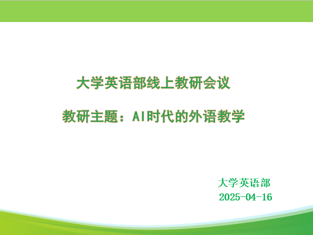 2025年4月16日晚上,bevictor伟德大学英语部线上举办了教研会议。大学英语部教师参加了此次线上教研活动,共同探讨AI时代的外语教学。