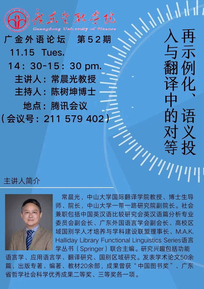 广金外语论坛第52期:再示例化、语义投入与翻译中的对等