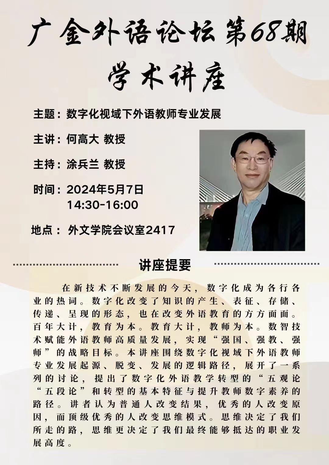 广金外语论坛第68期:数字化视域下外语教师专业发展