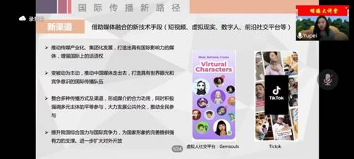 讲座中,赵教授结合自己多年研究和从事对外交流和合作的丰富经历,阐述了对外传播的重要性,结合丰富的案例和数据统计,探讨了中国文化软实力提升的问题,并进一步围绕国际传播能力建设的“新主体、新内容、新渠道”三个关键点,讲解了如何提升国际传播能力的方式和途径,积极创新对外传播方式方法,把我们想表达的中国故事、中国声音、中国方案、中国精神、中国风貌与海外受众想听且能听懂的内容紧密结合,进一步增信释疑、凝心聚力,有效助力中国形象对外传播,促进中国文化“走出去”。